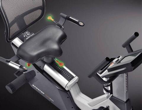 В отличие от конкурентных моделей, конструкция велотренажера RB300 предоставляет возможность регулировки не только положения сидения по горизонтали, но и регулировку угла сидения и наклона спинки! Благодаря столь широкому выбору регулировок, каждый пользователь может выбрать максимально комфортное положение и полностью сосредоточиться на тренировке. Удобная спинка с поясничной поддержкой имеет микрорегулировку угла наклона. 25 позиций регулировки положения сидения по горизонтали. С помощью плавного скольжения сидения по алюминиевой направляющей пользователи разного роста могут подобрать наиболее оптимальное расстояние. Эргономичное сидение повторяет контуры тела и гарантирует удобную посадку. 9 позиций регулировки положения сидения по высоте. Яркие, оранжевые рычаги регулировок.