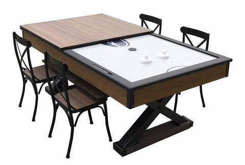 Игровое поле стола усилено меламином - это повышает сопротивление механическим воздействиям и сохраняет новый внешний вид поля максимально долгий срок. Штатные биты аэрохоккея Superior не комплектуются подклейками - меламин надежно защищает поле от царапин. Деревянная покрышка в комплекте делает стол многофункциональным, а также помогает бережно хранить игровую поверхность, уберегая от внешних воздействий. На внутренних рёбрах столешницы есть мягкие наклейки, которые уберегут поверхность аэрохоккея от царапин. Для удобства хранения столешницы под столом есть специальная ниша.