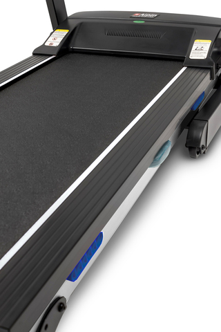 Большое беговое полотно размером 123 см в длину и 42 см в ширину – обеспечит комфортные и безопасные тренеровки. Угол наклона регулируется механическим путем в диапазоне от 0 до 5%. Верхний слой полотна выполнен из специального полимера, который не только гарантирует длительную эксплуатацию, но и за счет ромбовидной формы поверхности обеспечивает надежное сцепление обуви с полотном и допонительную амортизацию. В основе конструкции одинарной деки лежит древесно-волокнистая композитная плита средней плотности. Ее толщина составляет 16 мм, она обработана парафином для мягкого и долговечного скольжения.
