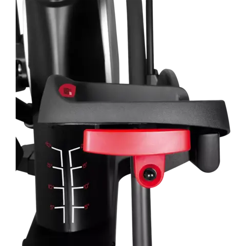 Прочный двойной алюминиевый трек и прорезиненные ролики гарантируют стабильность и тишину хода, конструктивно исключено соскальзывание педали с трека. Электрическое изменение наклона поднимает трек от 1 до 20 уровней, расширяет вариативность тренировок, меняет акцент нагрузки, увеличивая эффективность занятий и позволяет максимально глубоко прорабатывать все группы мышц, также индивидуально адаптирует тренажер, обеспечивает наиболее удобное положение спортсмена в зависимости от комплекции и спортивной подготовки. Инновационное исполнение педально-рычажного механизма Move BioMech™ на подвижном креплении к приводу и использование шарнирных подшипников Fish Eye позволяет создать плавающие плоскости траектории движения.