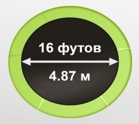 Зона прыжковой поверхности модели составляет 16 футов (4,87 м). На батуте 16FT с внутренней страховочной сеткой (Light Green) используется легендарный полипропилен Permatron™, произведенный в США, который является самым прочным материалом для прыжковой поверхности. Верхние стойки, в количестве 12 штук, оплетены чехлами из PE-материала. На верхней части стойки установлены специальные держатели. Они являются составной частью системы натяжения сетки и крепятся при помощи простого нажатия кнопки Smart Push™. По окружности рабочей зоны на стойки натянута прочная внутренняя защитная сетка высотой 185 см. В комплекте с батутом предусмотрена лестница длиной 96 см для удобного подъема. Батуты ARLAND легко собираются своими силами.