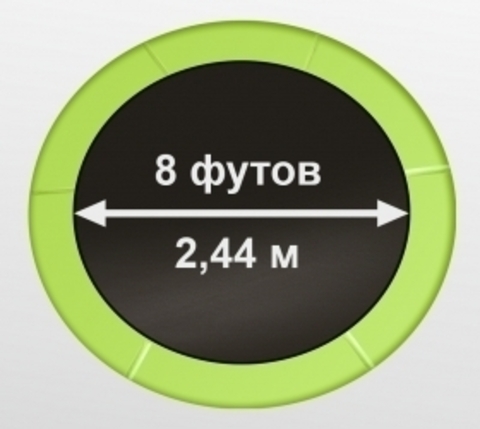 Зона прыжковой поверхности модели составляет 8 футов (2,44 м). На батуте 8FT с внешней страховочной сеткой (Light green) используется легендарный полипропилен Permatron™, произведенный в США, который является самым прочным материалом для прыжковой поверхности. Верхние стойки, в количестве 6 штук, оплетены чехлами из PE-материала. На верхней части стойки установлены специальные держатели. Они являются составной частью системы натяжения сетки и крепятся при помощи простого нажатия кнопки Smart Push™. По окружности рабочей зоны на стойки натянута прочная внешняя защитная сетка высотой 154 см. В комплекте с батутом предусмотрена лестница длиной 76 см для удобного подъема. Батуты ARLAND легко собираются своими силами.