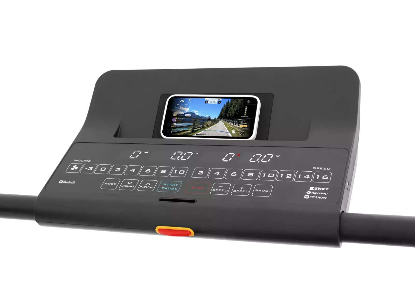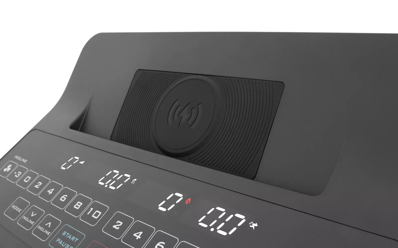 Помимо мощного мотора и большой беговой зоны, здесь есть отрицательный угол наклона, система автоматического складывания, проводная и беспроводная зарядка телефона, Bluetooth™ передатчик пульса, подключаемые "по воздуху" приложения и музыка. Здесь есть даже двухфазный вентилятор.