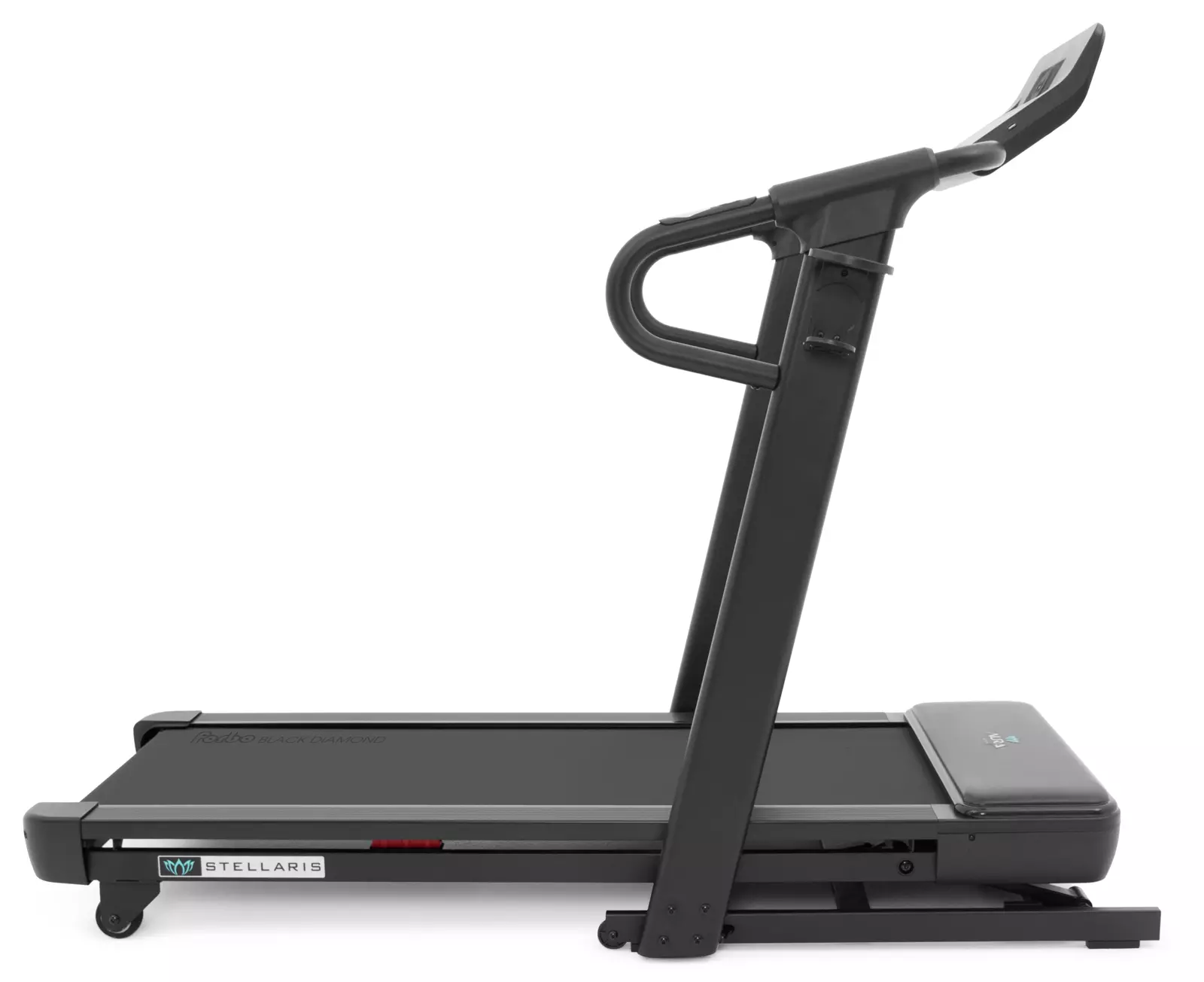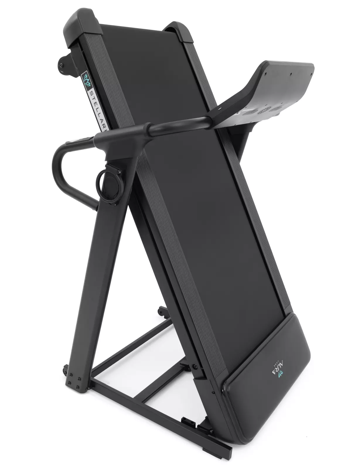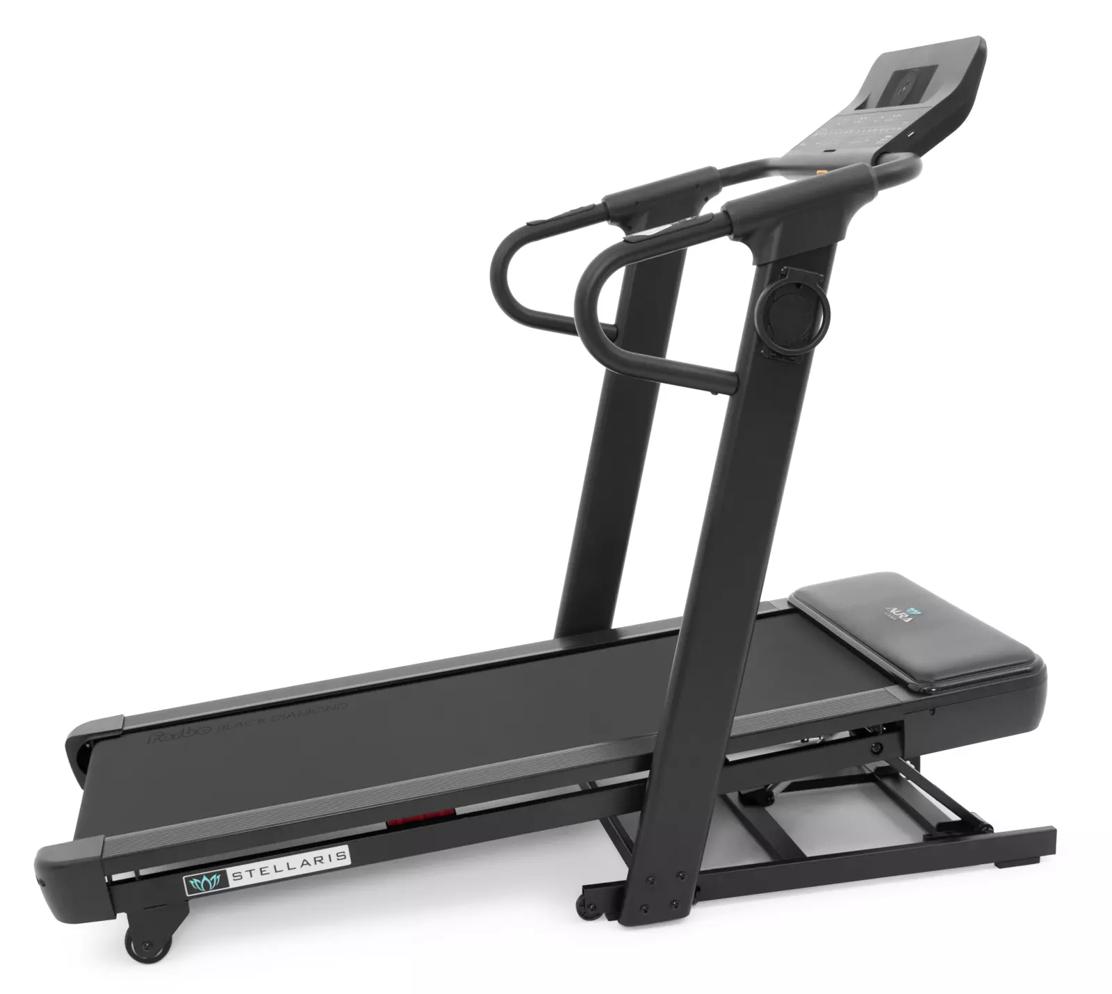 Уникальной и по-настоящему премиальной функцией Aura Labs™ Stellaris является технология автоматического складывания и раскладывания easy-Lift™. Все классические беговые дорожки достаточно легко раскладываются за счет газового доводчика. Но что насчет складывания? Дека беговой дорожки среднего уровня весит от 20 до 40 кг, для тяжелых дорожек до 60 кг и выше. И если для мужчины складывание дорожки обычно не представляет особой проблемы, то для женщин и людей пожилого возраста это сложно, а иногда и просто невозможно физически. Поэтому инженеры Dynamatica создали уникальную, присутствующую только в продуктах Aura Labs™, технологию автоматического складывания и раскладывания easy-Lift™. Теперь не надо руками раскладывать и, самое главное, складывать обратно беговую дорожку. Это можно сделать с помощью одного нажатия кнопки – в прямом смысле этого слова. Одно нажатие на раскладывание, одно на складывание. Технология также максимального продумана с точки зрения безопасности – в дорожку встроены датчики присутствия. Если при складывании или раскладывании рядом с тренажером окажется человек или животное, движение деки остановится и тренажер предупредит об опасности характерным звуковым сигналом. Автоматическое складывание оправдано еще и в том смысле, что дорожка хорошо продумана в плане компактности и занимает в сложенном виде менее 1-ого квадратного метра (98*83 см).