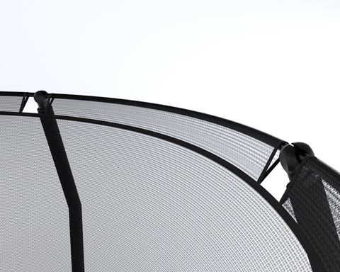 В качестве материала прыжковой поверхности используется прочный перматрон. Надежные опорные стойки из оцинкованной стали обеспечивают устойчивое положение на любом типе покрытия. Максимальную безопасность обеспечивает защитная сетка из высокопрочного нейлона, подушка безопасности толщиной 10мм и верхние стойки в мягких чехлах из поролона.