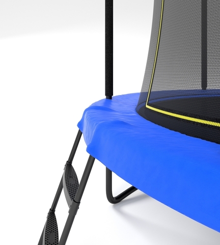 Максимальную безопасность обеспечивает защитная сетка из высокопрочного нейлона плотностью 130 гр/м², подушка безопасности толщиной 21мм и верхние стойки в мягких чехлах из поролона. В качестве материала прыжковой поверхности используется прочный перматрон. Надежные опорные стойки из оцинкованной стали с двойной порошковой окраской обеспечивают устойчивое положение батута на любом типе покрытия.