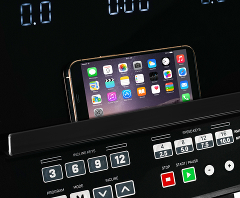 Дорожка оборудована сразу двумя подставками для мобильных устройств – можно расположить телефон или планшет там где удобно, при этом они не будут заслонять информацию на дисплеях консоли.