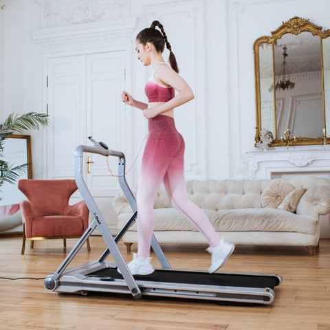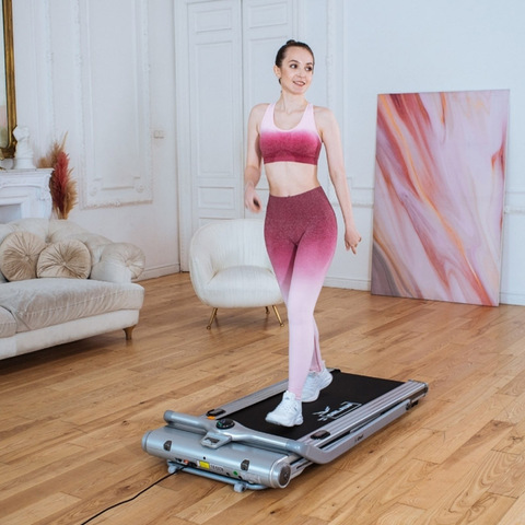 Эта модель разработана с учетом удобства хранения и мобильности, что делает ее идеальным выбором для небольших пространств. Компенсаторы неровности пола гарантируют устойчивость на любой поверхности, а автоматически выдвигающаяся подножка упрощает процесс использования и хранения дорожки.