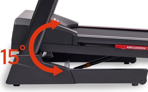 Что касается своих основных биомеханических свойств, Titanium Masters Physiotech TGF TFT относится к группе суперпремиальных дорожек и закрывает все цели и задачи практически любого пользователя. В моторном отсеке – надежный, проверенный временем двигатель японской Fuji Electric мощностью 3,25 л.с. постоянного тока, он разгоняет дорожку до внушительных 16 км/ч. Размер бегового полотна составляет 138 см. в длину и 46 см. в ширину – это отличные показатели, обеспечивающие безопасность, комфорт и свободу движений на любых скоростях. Электрически изменяемый угол наклона от 0 до 15% усиливает нагрузку и общую эффективность тренировки, особенно в связке с встроенными тренировочными программами. За качество скольжения отвечает многослойное полотно NНT-218 толщиной 1,8 мм. швейцарского бренда Habasit и парафинированная дека толщиной 18 мм. Нагрузка на суставы и позвоночник минимальна, в дорожку установлена одна и самых передовых амортизационных платформ – здесь работает связка из 4-ех полиуретан-гелиевых амортизаторов air-CUSHION™ и 4-ех полноразмерных динамических эластомеров VCS™ профессионального уровня. Двухфазная гидравлическая система складывания easy-DROP™ существенно облегчает складывание дорожки, а при раскладывании обеспечивает медленное опускание полотна в последней фазе, гарантируя легкость и безопасность. Перемещение дорожки происходит за счет 2-х транспортировочных роликов.