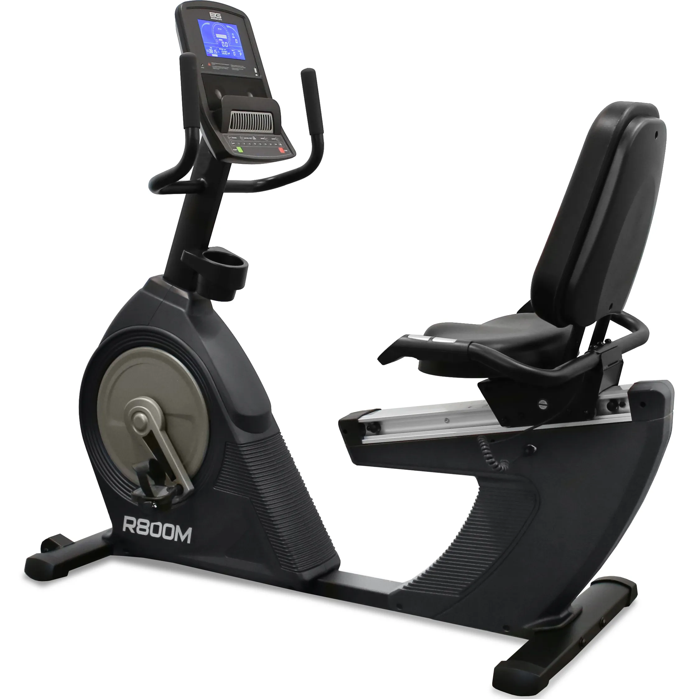 R800M_NEW идеально подойдет для тех, у кого есть проблемы со спиной. Сиденье со спинкой профессионального класса имеет возможность горизонтальной регулировки. Широкое и очень мягкое, выполненное в анатомической форме с гелевыми вставками. Направляющая рельса сиденья сделана из алюминиевого сплава. Рифленые самобалансирующиеся педали с прорезиненными многопозиционными ремешками обеспечивают надежное сцепление на любых скоростях. Велоэргометр удобно перемещать благодаря двум транспортировочным роликам, а точное горизонтальное положение обеспечивают компенсаторы неровностей пола. Максимальный вес пользователя - 160 кг.