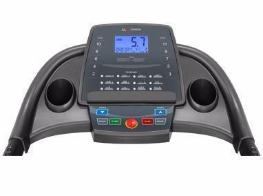 Тренировочные показатели выводятся на многофункциональный голубой дисплей высокой контрастности размером 4.9 дюйма (12.5 см.). В программный пакет входят 12 предустановленных программ и самостоятельно регулируемый ручной режим. Сенсорные датчики пульса расположены на поручнях тренажера. Там же находятся и "быстрые кнопки" доступа к изменению скорости и начала/остановки тренировки. За удобство складывания отвечает двухфазная гидравлическая система Easy Drop™ - она существенно облегчает складывание дорожки, а при раскладывании обеспечивает медленное опускание полотна в последней фазе, гарантируя легкость и безопасность. Перемещение тренажера происходит за счет 2-ух транспортировочных роликов.
