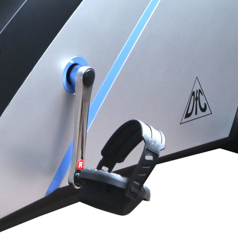 Магнитный велотренажер DFC B8729R горизонтальный имеет достаточно удобную посадку. Система нагрузки магнитного типа. В наличии анатомическое сиденье со спинкой, которая может вентилироваться. На ручках стоят датчики, дающие возможность отслеживать частоту пульса. Максимальная нагрузка не должна превышать 120 кг. Тренировка получается комфортной за счет широких педалей с ремешком. Питание осуществляется за счет пары батареек. Вес конструкции в снаряженном состоянии составляет: 163 на 66 на 101 см. Тренажер оборудован компенсаторами неровности пола, можно устанавливать в любом помещении.