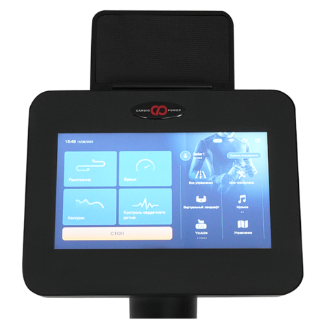 Информативный TFT сенсорный-дисплей диагональю 10,1 дюймов обладает высокой контрастностью и предоставляет полную информацию о параметрах тренировки. Отображаемые параметры: Скорость, Дистанция, Время, Расчет потраченных калорий, Информацию о пульсе (ЧСС), Уровень наклона, RPM, Watt.