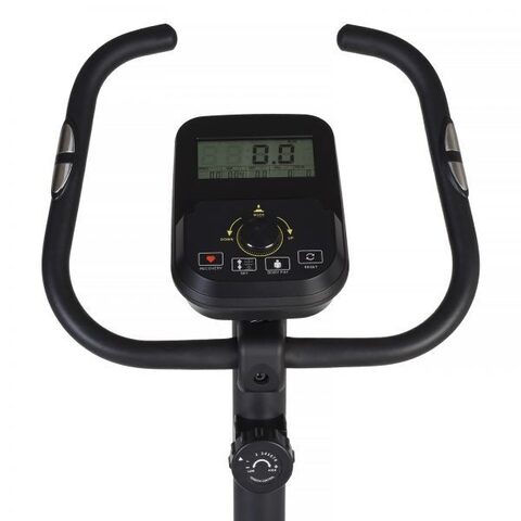 Компьютер с LCD дисплеем прост в управлении, и отображает все основные параметры тренировки – время, пройденную дистанцию, скорость, расход калорий, обороты в минуту и пульс, что позволяет эффективно контролировать весь процесс тренировки. Сенсорные датчики съема пульса вмонтированы в руль тренажера. Нагрузка регулируется механическим путем в 8 положениях.