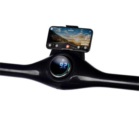 Удобная и приятная в использовании консоль отображает все основные параметры тренировки: время тренировки, пройденную дистанцию, расход калорий, текущую скорость. Запуск, остановка, и регулировка скорости происходят при помощи центрального модуля управления поворотного действия либо пультом дистанционного управления. В установленный программный пакет входит 1 тренировочный профиль – ручной режим. В консоль интегрированы два динамика объемного звучания, музыка передается со смартфона через Bluetooth. Беговая дорожка оснащена подставкой для планшета либо смартфона c системой плотной фиксации, полностью исключающей скольжение либо движение мобильного устройства по причине естественных ударных вибраций беговой дорожки, возникаемых при беге.