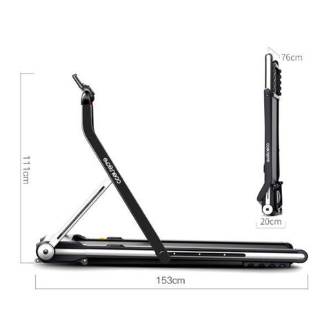 Беговая дорожка имеет стильный футуристический дизайн, который идеально впишется в любой интерьер. Тренажер оснащен уникальной, простой в использовании, системой складывания, которая существенно экономит полезное пространство в квартире. Занимаемая площадь беговой дорожки в сложенном виде в 3 раза меньше по сравнению с беговыми дорожками с обычной системой складывания. Боковые стойки и консоль подвижные и позволяют сложить их в одной плоскости. Хранить беговую дорожку можно в любом удобном положении: горизонтальном либо вертикальном. Ее можно хранить в шкафу, под кроватью, в кладовке, в нише или просто у стены, так как толщина дорожки в сложенном виде составляет всего 20 см.