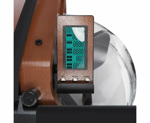 Консоль гребного тренажёра SmartGym имеет 8 уровней регулировки педалей и показывает время, расстояние, калории, пульс и обороты в минуту. Система нагрузки является водной: чем больше вы зальёте в бак воды, тем больше будет нагрузка.