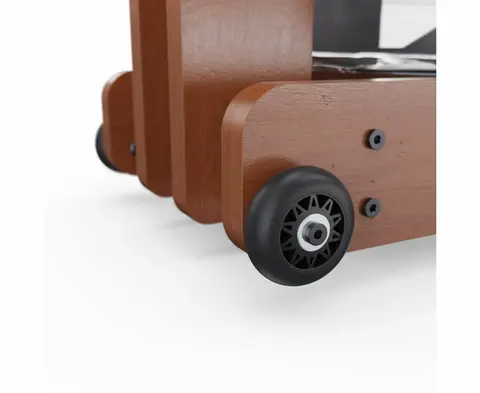 Транспортировочные ролики позволяют легко перемещать тренажёр, а его размер в сложенном виде составляет 60 x 56,5 x 210 см.