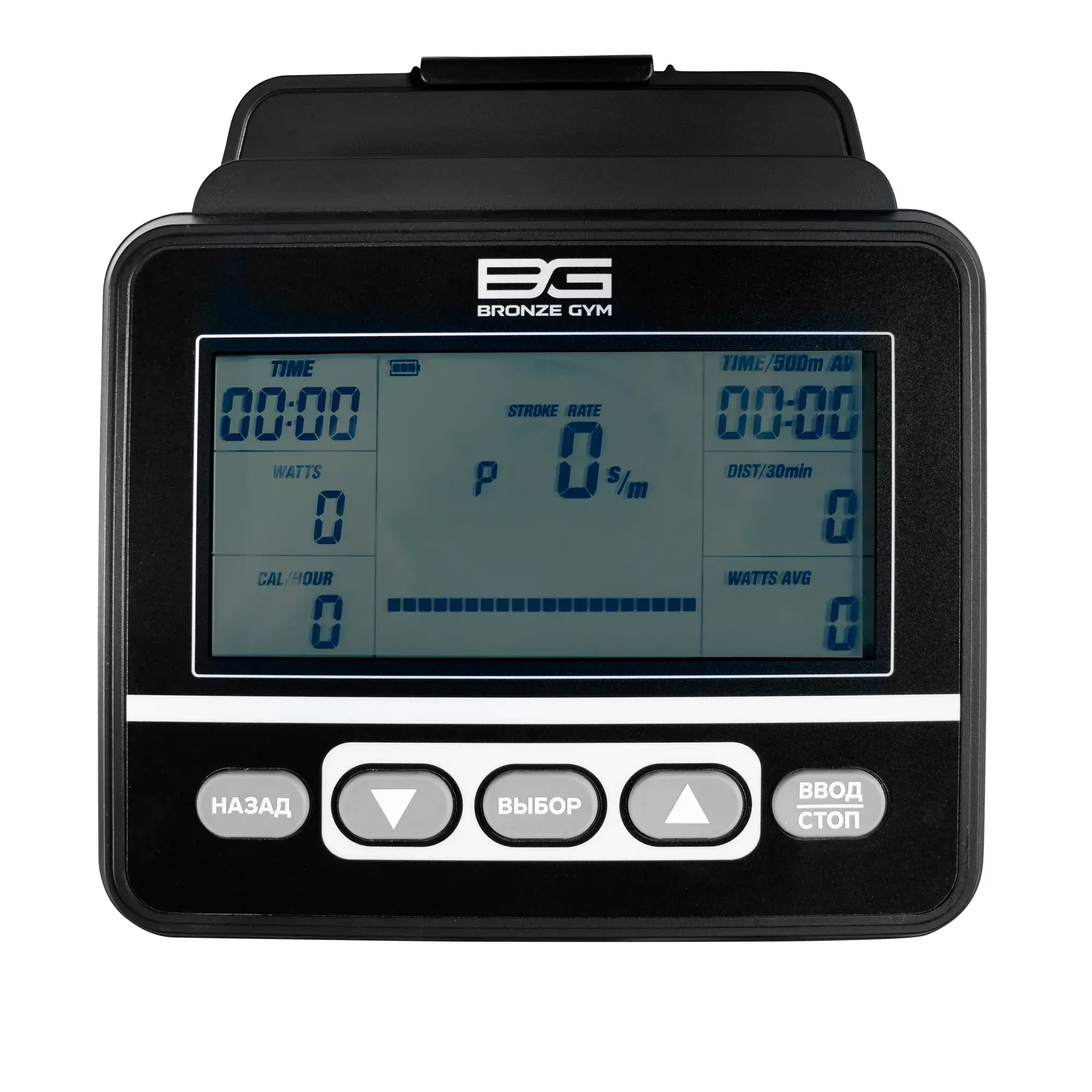| Показания консоли | время тренировки, пройденная дистанция, расход калорий, пульс, количество гребков в минуту, мощность в Вт, средняя мощность в Вт, циклы тренировки |