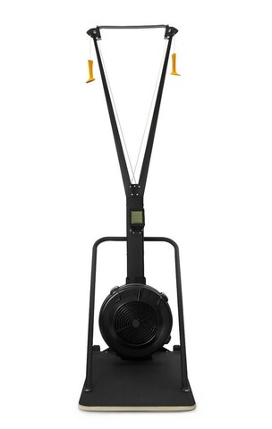 Лыжный тренажер VictoryFit VF-Ski100. Нагрузка происходит за счет аэродинамической системы сопротивления, создаваемой воздухом. В тренажере предусмотрено до 10 уровней нагрузки. Нагрузка регулируется за счёт интенсивности движений рук пользователя (высокий уровень при резких движениях и низкий при плавных). Техника тренировки соответствует технике бега на лыжах, эргономичные рукоятки на прочнейших нейлоновых тросиках максимально точно имитируют биомеханику движений рук в естественных условиях лыжной тренировки. Тренажер может устанавливается на специальную подставку (входит в комплект), а также может быть закреплен к стене.