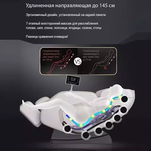 Новый уровень массажа достигается благодаря улучшенной конструкции SL-массажной каретки. Движущиеся вдоль каретки ролики повторяют естественные изгибы и массируют все тело - от шеи до копчика.