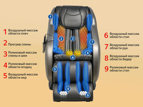 | Зоны массажа | Шея / Спина / Поясница / Плечи / Руки / Бедра / Ягодицы / Икры / Стопы |