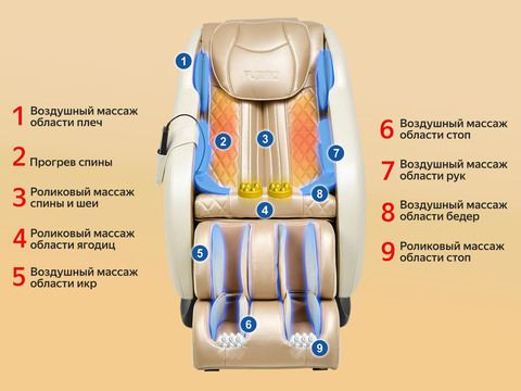 | Зоны массажа | Шея / Спина / Поясница / Плечи / Руки / Бедра / Ягодицы / Икры / Стопы |