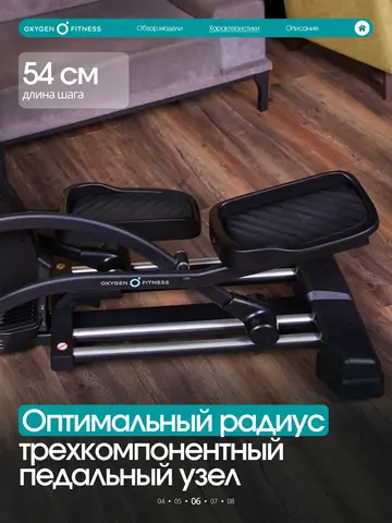 • Длина шага 540 мм — максимально естественная траектория, близкая к беговой, подходит пользователям разного роста.