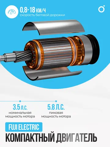 Этот тренажер сочетает в себе передовые технологии, прочную конструкцию и стильный дизайн, обеспечивая вам комфортные и эффективные тренировки на профессиональном уровне. Fuji Electric AC с мощностью 3,5 л.с. и пиковой мощностью 5,8 л.с., эта дорожка гарантирует стабильную и плавную работу.