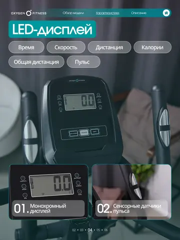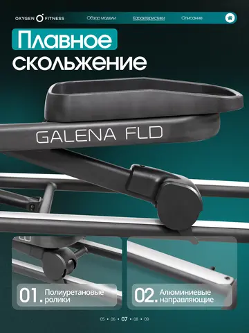 OXYGEN FITNESS GALENA FLD — компактный и функциональный эллиптический тренажёр для домашних тренировок, ориентированный на регулярные кардиозанятия с акцентом на комфорт, плавность хода и экономию пространства.