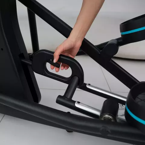 Поручни тренажера выполнены в удобной изогнутой форме с мягкой оплеткой. Тренажер также оснащен неподвижными поручнями с датчиками пульса, позволяющими контролировать свою частоту сердечных сокращений во время тренировки.