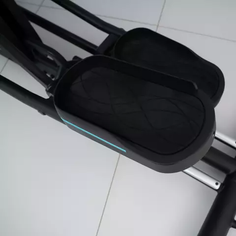 Педали тренажера имеют трехкомпонентный дисковый педальный узел с увеличенным радиусом, обеспечивая комфорт и безопасность во время тренировки. Антискользящие педали увеличенного размера и расстояние между педалями в 6 см обеспечивают естественное и удобное положение ног во время тренировки.