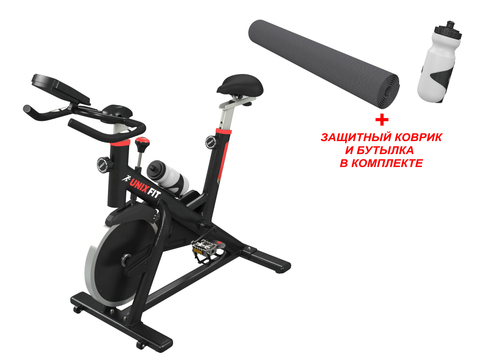 Спин-байк UNIXFIT SB-490 оснащен ременным типом привода. Колодочная система нагружения позволяет выбрать оптимальный уровень нагрузки. Регулировка нагрузки осуществляется с помощью рукоятки на корпусе тренажера.