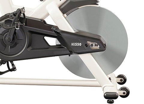 Ременный привод спин-байка MB550 работает плавно и тихо и не нуждается в смазке, в отличии от системы цепного привода.