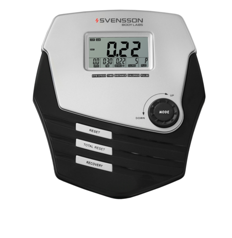 За показатели пульса отвечают вмонтированные в рукоятки сенсорные датчики пульса. Велотренажер удобно перемещать благодаря двум транспортировочным роликам, а точное горизонтальное положение обеспечивают компенсаторы неровностей пола. Черно-белый LCD-дисплей диагональю 9 см одновременно выводит на экран различные параметры тренировки - время, дистанцию, скорость, калории, обороты в мин., пульс. Помимо этого, здесь предусмотрена функция фитнес-теста (Recovery) - она позволяет быстро оценивать тренированность человека и определять, насколько хорошо развита его сердечно-сосудистая и дыхательная системы. Конструкция рамы рассчитана на комфортную тренировку пользователей ростом до 195 см и весом до 130 кг.