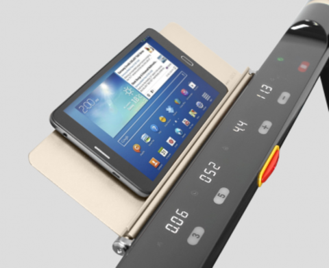 Консоль SPACETECH - это отличное решение не только с точки зрения функционала, но и дизайна. Она представляет собой тонкую панель с черной акриловой поверхностью. 4 LED-дисплея выводят следующие тренировочные данные: дистанция, время, количество шагов, калории и скорость. Сенсорные кнопки изменяют показатели консоли и отличаются своей долговечностью и влагостойкостью. Все элементы консоли прекрасно видны даже в условиях слабой освещенности. Широкая алюминиевая подставка для смартфонов и планшетов фиксируется при помощи встроенной системы складывания. Пользователь может слушать любимую музыку через встроенные динамики, достаточно подключить оборудование к разъему Audio IN minijack 3,5 мм.