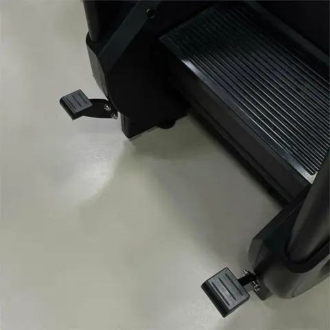 На тренажере установлены четыре регулируемые по высоте ножки и четыре транспортных колеса для удобства перемещения.
