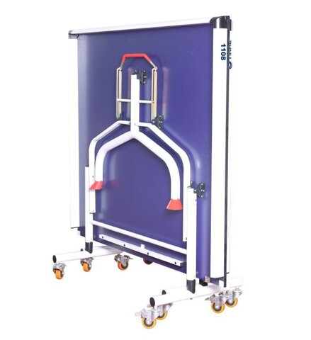 Стол YINHE 1108 25 мм имеет компактную систему складывания (тип 4b). Это особенно удобно для нестационарных залов, где столы приходится ежедневно складывать и раскладывать. Ножки стола YINHE 1108 25 мм снабжены устройством для горизонтальной юстировки положения стола в разложенном состоянии в диапазоне до 25 мм.
