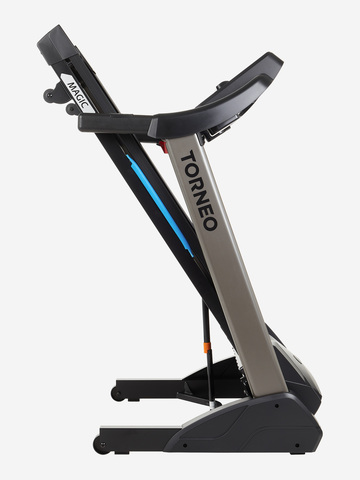 Амортизатор для плавного опускания беговой поверхности, подставка для планшета, отсеки для аксессуаров на консоли. |