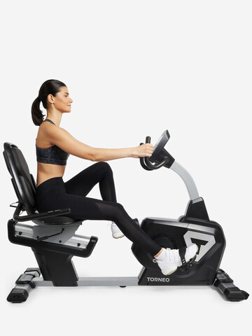 Анатомическое сиденье с большой спинкой и поручнями обеспечит удобное положение во время тренировки и снизит нагрузку на спину и поясницу.