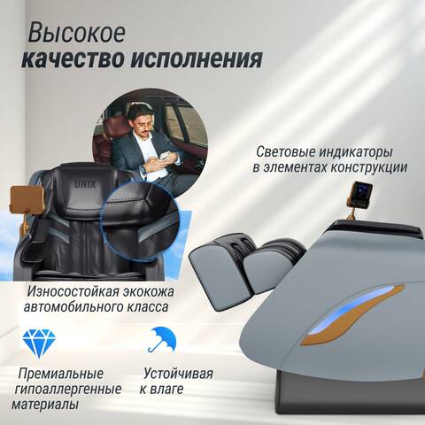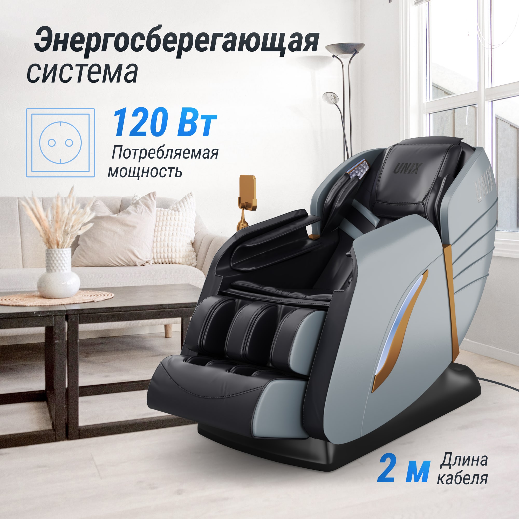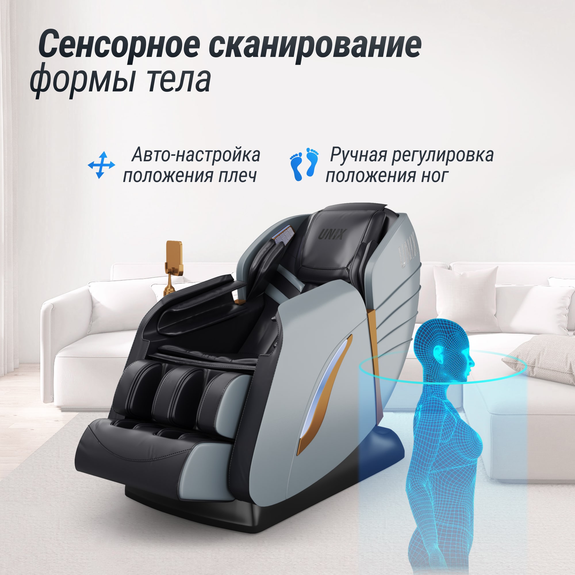 - Встроенные динамики позволят во время массажа слушать любимую музыку через Bluetooth со звуком Hi-Fi. Кресло позволяет синхронизировать вашу любимую музыку с массажным механизмом. Расслабьтесь под свою любимую музыку и получайте удовольствие с массажным креслом UNIX Med. Встроенная функция Bluetooth позволяет подключать ваше устройство и наслаждаться любимыми мелодиями или расслабляющими звуками природы во время массажа спины, ШВЗ (шейно-воротниковой зоны) или массажа ног. Создайте дома идеальную атмосферу для отдыха и восстановления сил!