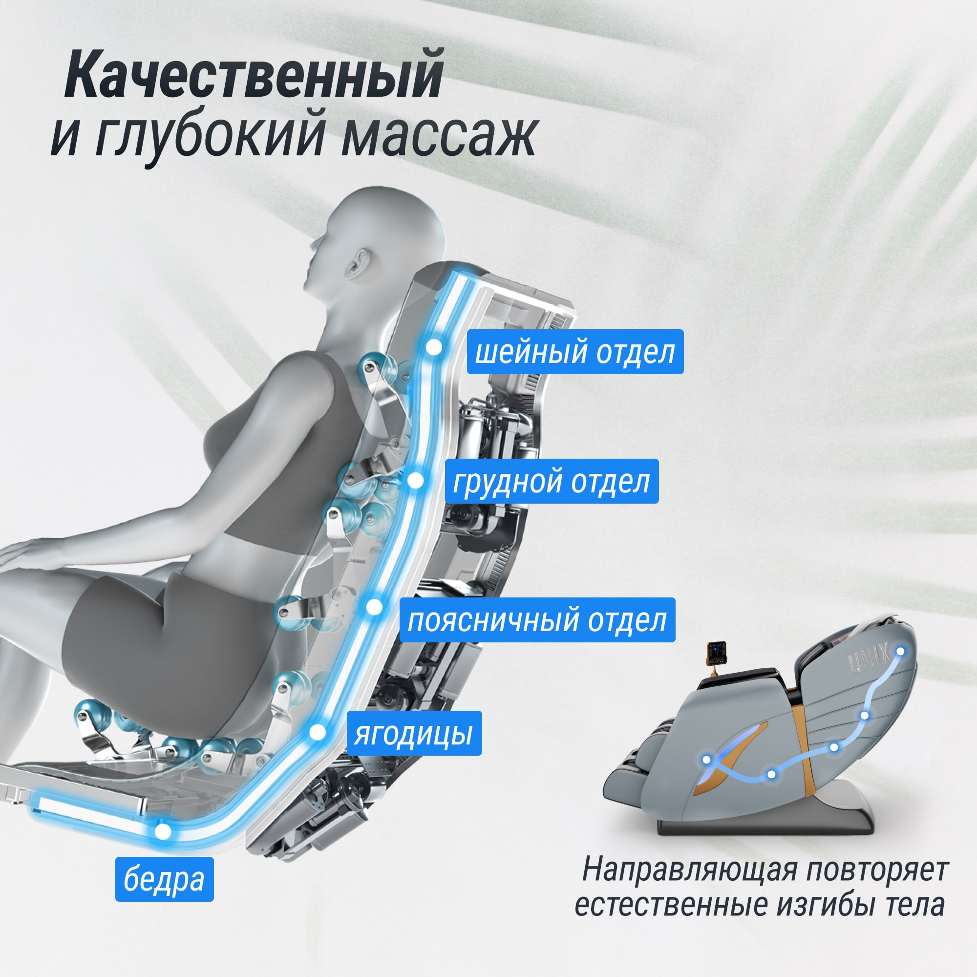 - Возможности. Автоматическое обнаружение и точная настройка положения плеч, изгибов тела и массажных акупунктурных точек, аэромассаж верхней части тела, функция аэромассажа ладоней (4 воздушных массажера), функция аэромассажа рук ((4 воздушных массажера), 3 уровня интенсивности давления воздуха. Аэромассаж нижний части тела: функция аэромассажа икр (12 воздушных массажера) + 3 уровня интенсивности давления воздуха. Воздушные массажеры для левой и правой ладони оснащены функциями ударного массажа. Функция роликового массажа ступней состоит из трех комплектов валиков, которые массируют пальцы и ступни ног, своды ступней, скорость регулируется тремя положениями. Скребковый массаж с роликами для ног, телескопическая функция для упругих ног.