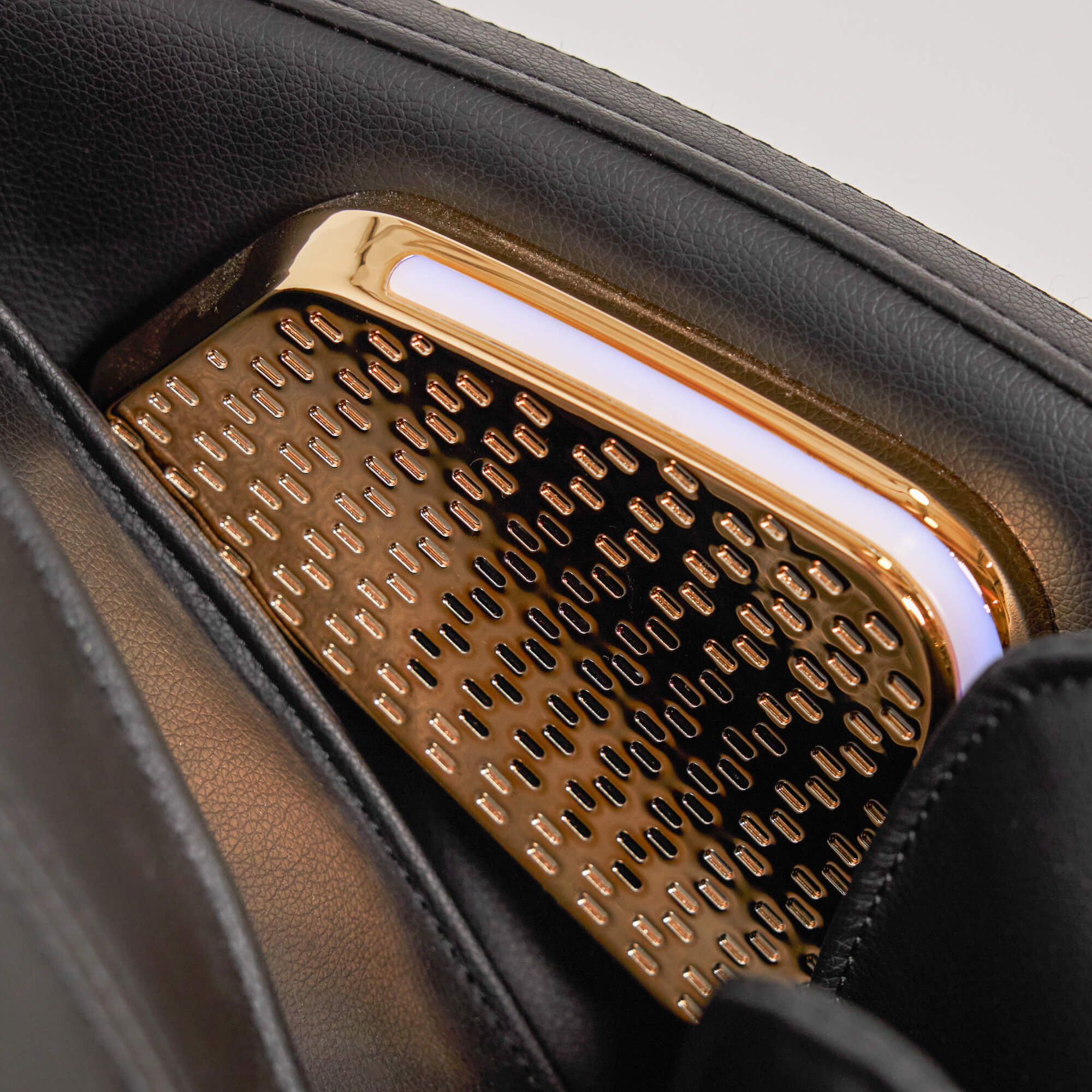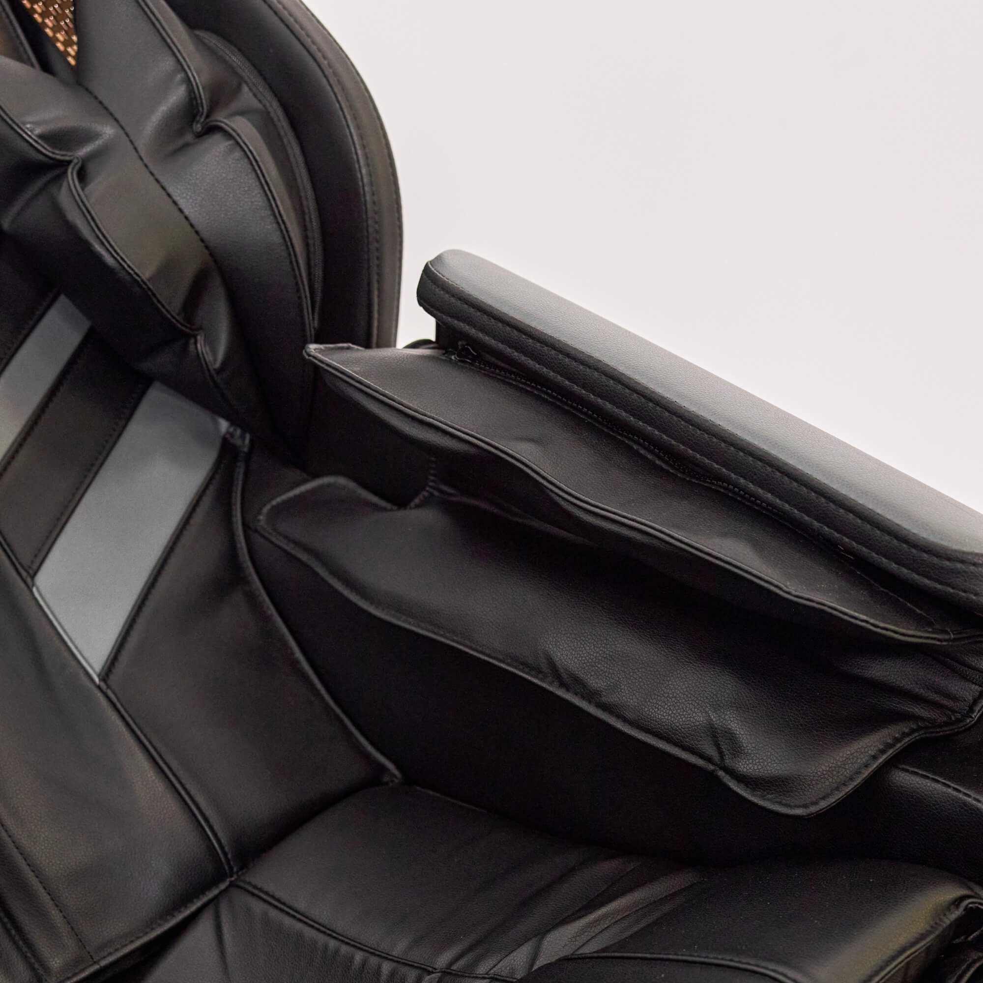 - SL-образная каретка с областью воздействия от шеи до бедер длиной 120 см. Каретка входит в состав блока массажного кресла и отвечает за интенсивность работы роликов. Чем она длинней, тем больше участков тела массируется. SL-образная каретка — это самая новая вариация каретки для более качественного и глубокого массажа. Охватывает больше участков тела, в нее встроены ролики, которые движутся от шеи до бедер. Эргономичный дизайн конструкции каретки выполнен с учетом всех потребностей, которые возникают при массаже в кресле, она идеально подходит под изгибы тела. Прорабатывает область от шеи до бедер и ягодиц и вы ощущаете всю полноту массажа, а ваши мышцы расслабляются. Подлокотник в форме космической капсулы, с обеих сторон которого встроены 8 подушек безопасности для волнового массажа
