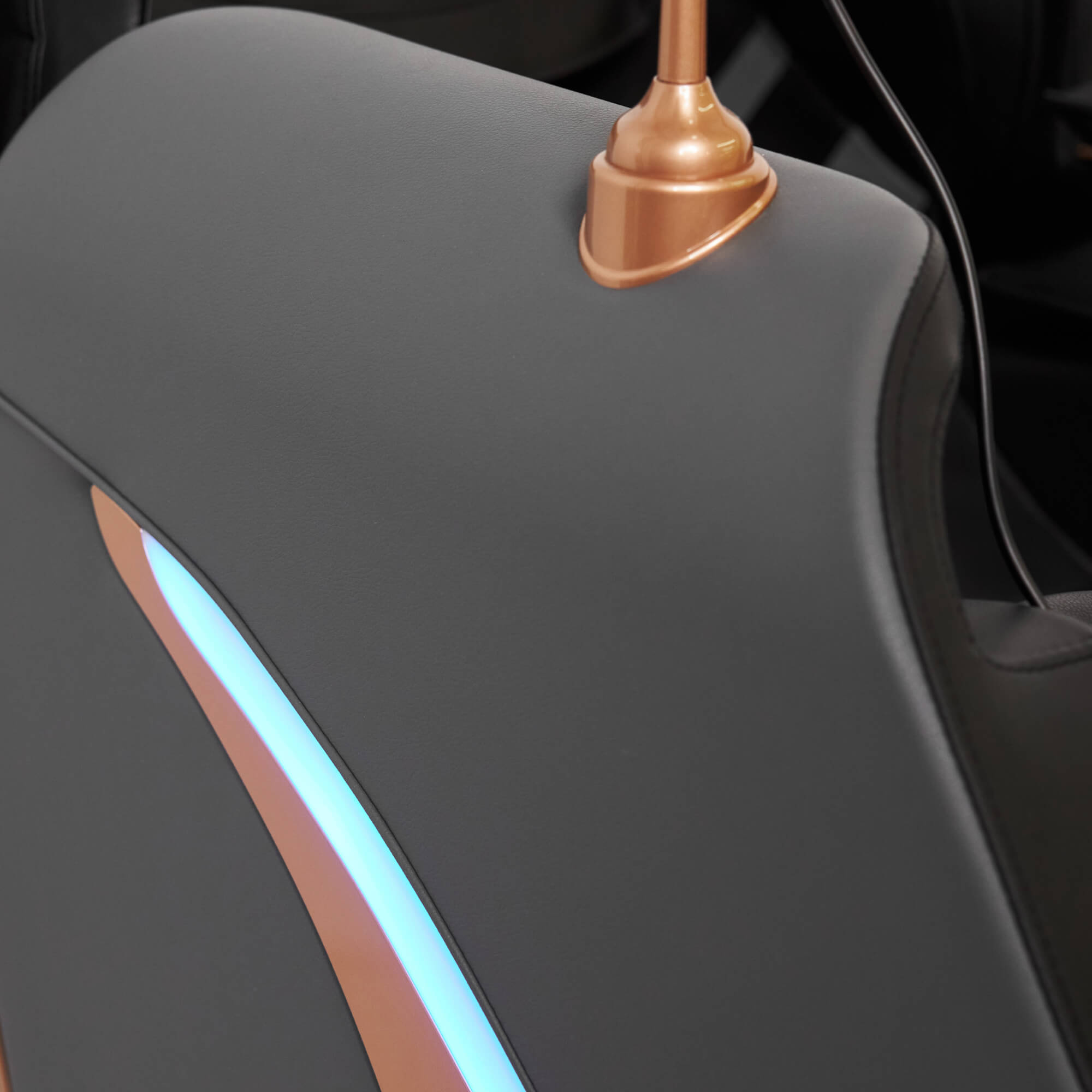 - Нулевая гравитация / Zero Gravity. Активация Zero-G автоматически наклоняет конструкцию под определенным углом. Нагрузка распределяется равномерно по телу, возникает ощущение легкости, сравнимое с состоянием невесомости. С этой функцией тело находится в самом комфортном положении, оно максимально расслабленно, а значит, пользы от массажа будет гораздо больше, чем в любом другом положении. В состоянии невесомости нагрузка, действующая на позвоночник, равномерно распределяется по поверхности кресла. Снимаются спазмы в мышцах спины и шеи, улучшается кровообращение, восстанавливаются жизненно важные процессы, улучшается сон. Zero-G подойдет для релаксации и оздоровления людей, занятых на тяжелых работах, офисных сотрудников, спортсменов, водителей авто, а также людей испытывающих большие нагрузки на работе и дома. Предусмотрена регулировка угла наклона 118° ~ 145°.