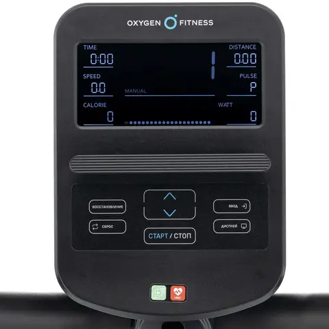 Консоль MOMENTUM RB представляет собой LCD-экран, на котором отображаются следующие показатели: время, текущая скорость, пройденное расстояние, количество сожженных калорий, пульс, уровень нагрузки, профиль выбранной программы, обороты педалей в минуту и ВАТТы.