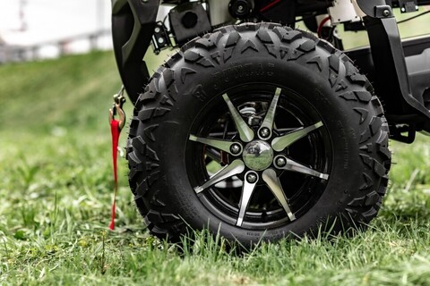 Самая большая колесная база среди среднеразмерных эл.квадроциклов : от передней оси до задней 1240 мм, расстояние между передними колёсами — 1120 мм, задними — 1240 мм. Большая площадь опоры дает хорошую устойчивость!