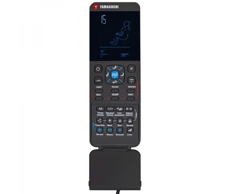 Управление всеми большими возможностями кресла осуществляется с пульта. Для того, чтобы пользователю было еще понятнее, на пульте есть экран, на котором отображаются все особенностей процедуры. Пульт полностью на русском языке, все кнопки подписаны. Настройка аппарата не составит никакого труда. У кресла имеются свои колонки для проигрывания музыки с вашего мобильного устройства. Синхронизация аппаратов осуществляется через BlueTooth.